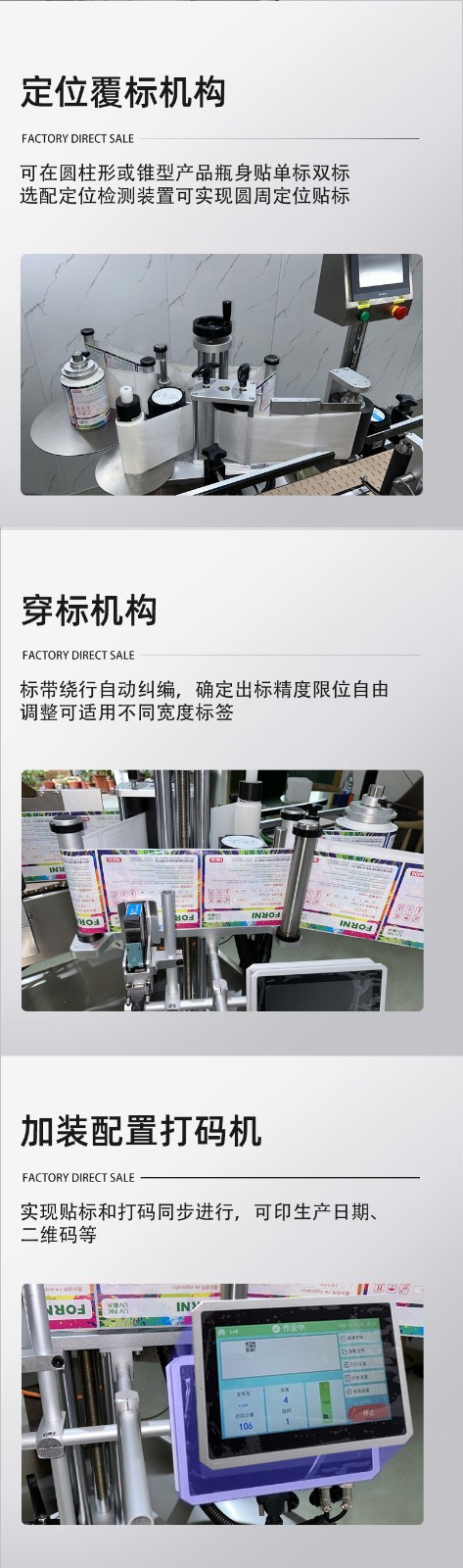 自動化程度高:采用先進的傳感器和控制系統,可實現自動送瓶、貼標、打碼、收瓶等功能,無需人工干預,提高生產效率和貼標質量。